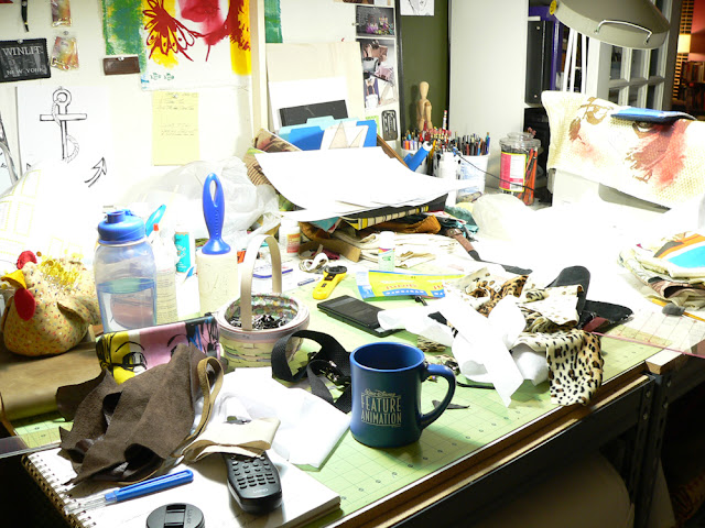 This messy studio has already been cleaned-up and I spent the day photographing all the new bags for the store, just give me a little time to sort and post them to the shop.